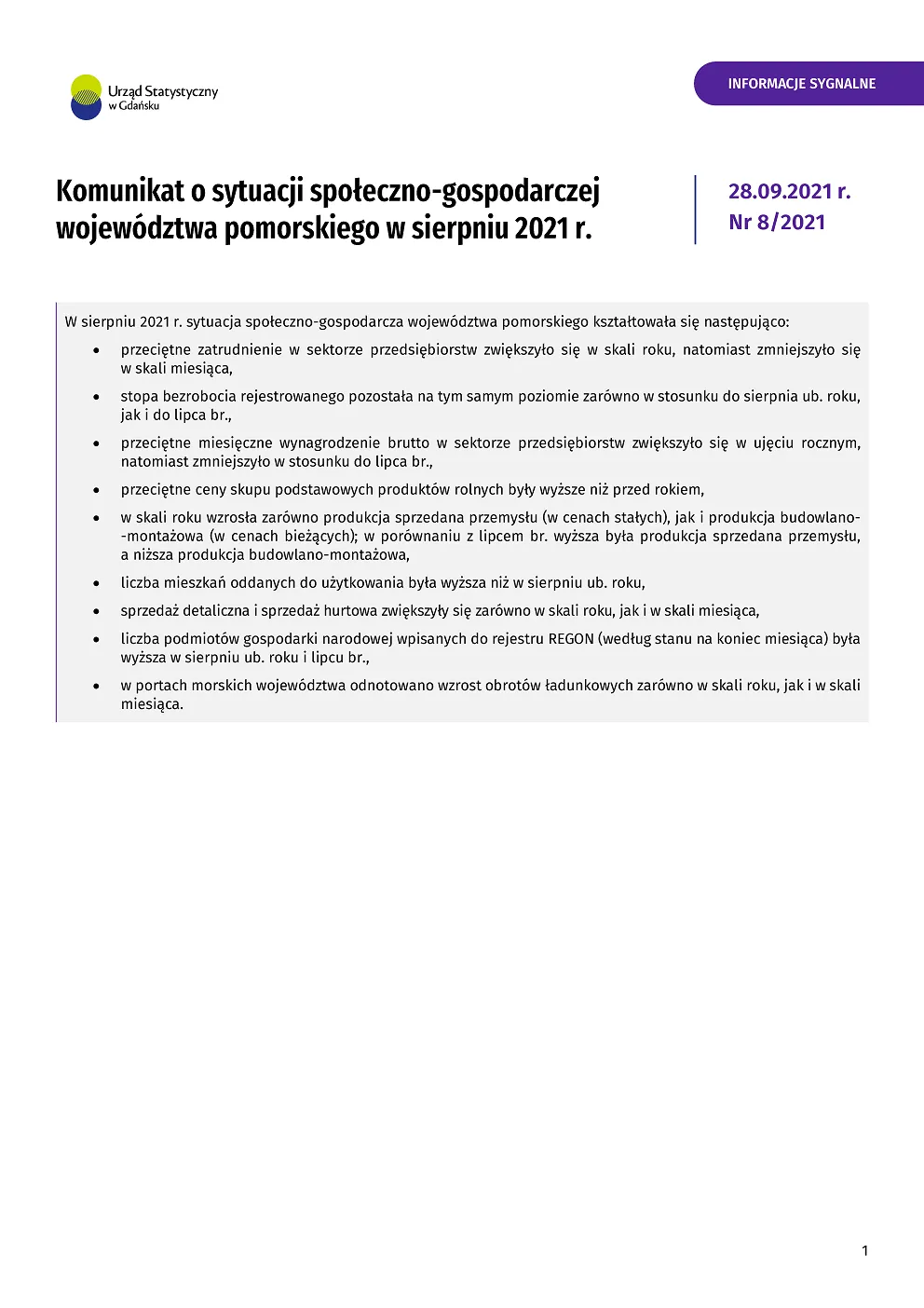 - Komunikat o sytuacji społeczno-gospodarczej województwa pomorskiego we wrześniu 2021 r.