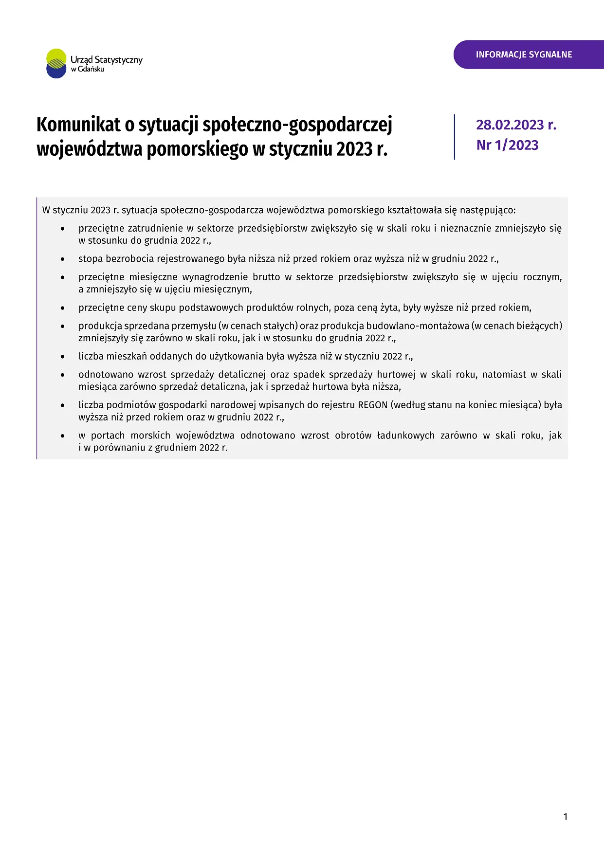 - Komunikat o sytuacji społeczno-gospodarczej województwa pomorskiego w lutym 2023 r.