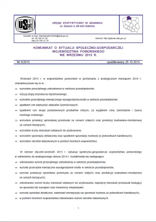 Komunikat o sytuacji społeczno-gospodarczej województwa pomorskiego we wrześniu 2015 r.