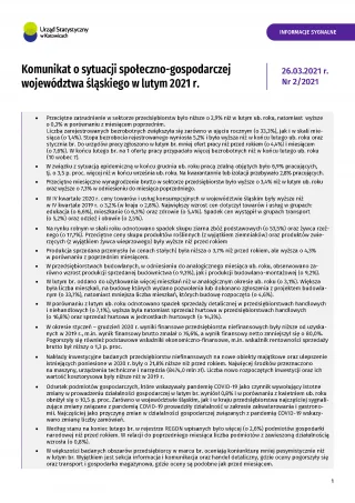 - Komunikat o sytuacji społeczno-gospodarczej województwa śląskiego 2021 (I 2021)