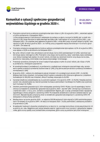 Komunikat o sytuacji społeczno-gospodarczej województwa śląskiego 2021 (XII 2020)