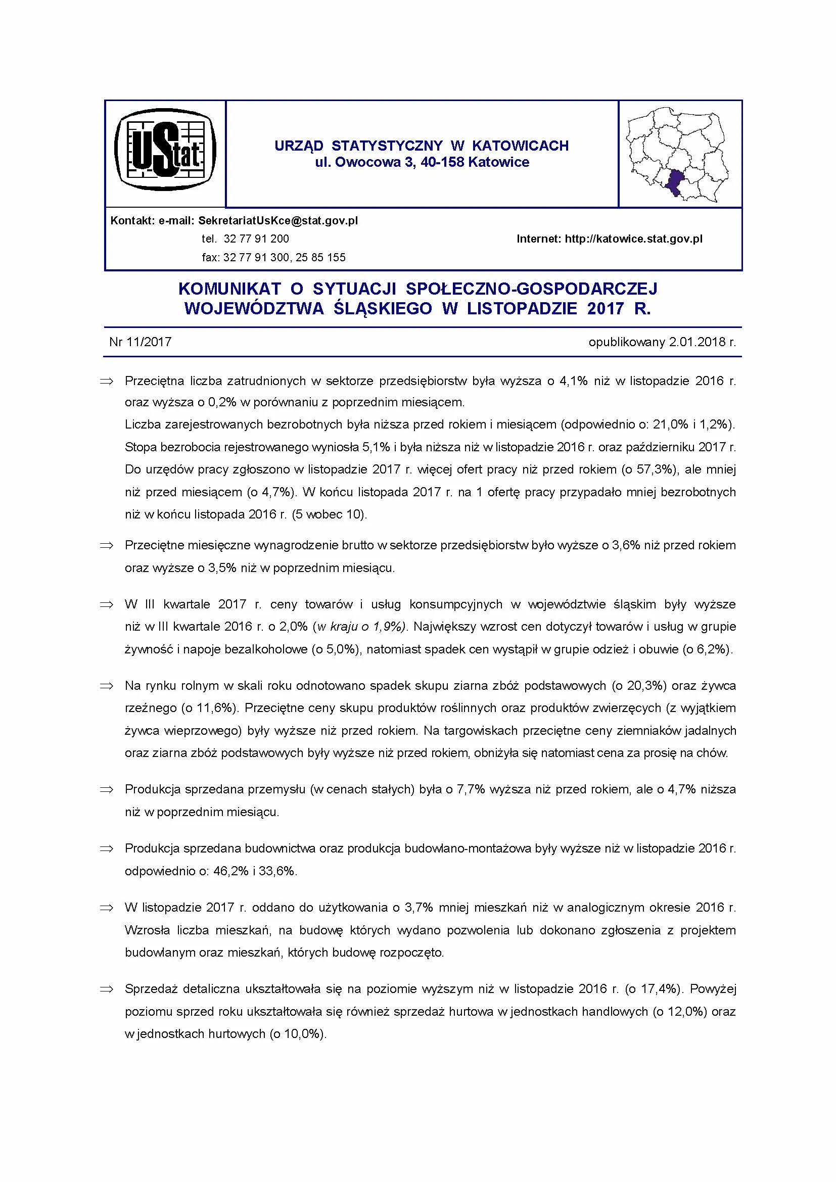 - Komunikat o sytuacji społeczno-gospodarczej województwa śląskiego w styczniu 2018 r.