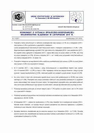 Komunikat o sytuacji społeczno-gospodarczej województwa śląskiego - listopad 2017