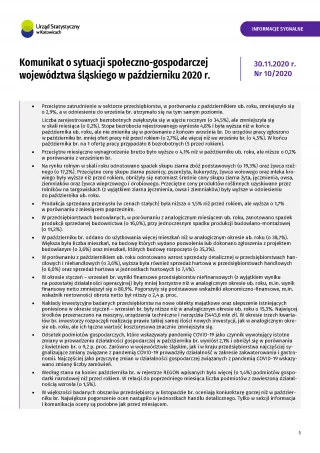 Komunikat o sytuacji społeczno-gospodarczej województwa śląskiego w październiku 2020 r.