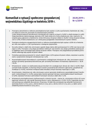 Komunikat o sytuacji społeczno-gospodarczej województwa śląskiego w kwietniu 2019 r.