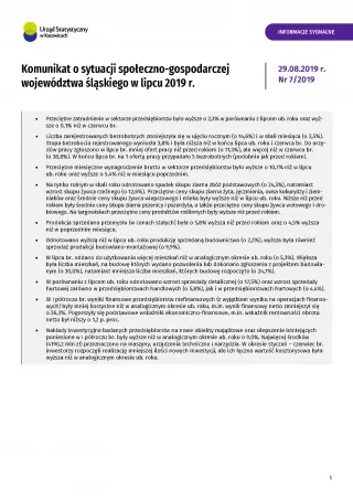 Komunikat o sytuacji społeczno-gospodarczej województwa śląskiego w lipcu 2019 r.