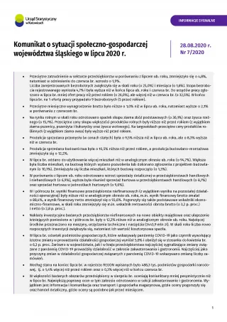 - Komunikat o sytuacji społeczno-gospodarczej województwa śląskiego w sierpniu 2020 r.