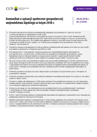 Komunikat o sytuacji społeczno-gospodarczej województwa śląskiego w lutym 2018 r.