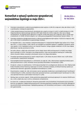 - Komunikat o sytuacji społeczno-gospodarczej województwa śląskiego w czerwcu 2024 r.