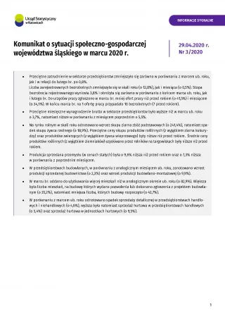 - Komunikat o sytuacji społeczno-gospodarczej województwa śląskiego w kwietniu 2020 r.