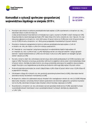 Komunikat o sytuacji społeczno-gospodarczej województwa śląskiego w sierpniu 2019 r.