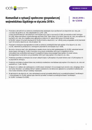 Komunikat o sytuacji społeczno-gospodarczej województwa śląskiego w styczniu 2018 r.