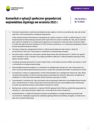 - Komunikat o sytuacji społeczno-gospodarczej województwa śląskiego w październiku 2022 r.