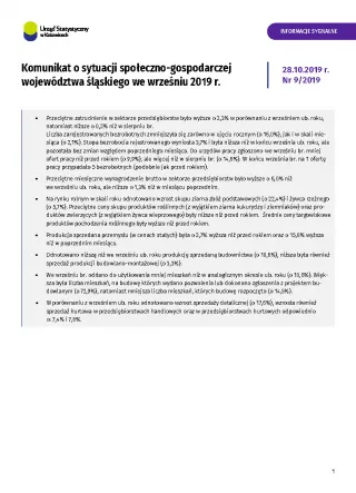 Komunikat o sytuacji społeczno-gospodarczej województwa śląskiego we wrześniu 2019 r.