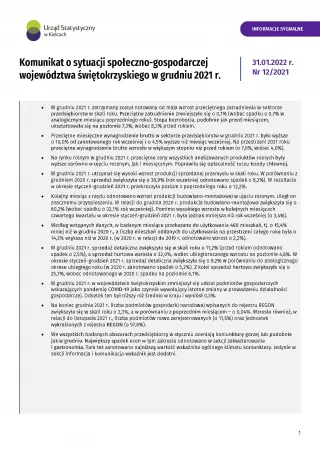 Komunikat o sytuacji społeczno-gospodarczej województwa świętokrzyskiego - grudzień 2021
