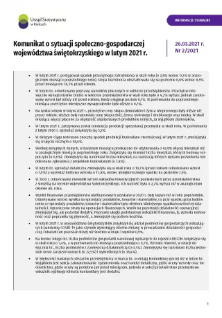 - Komunikat o sytuacji społeczno-gospodarczej województwa świętokrzyskiego - marzec 2021