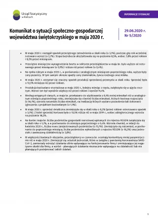 - Komunikat o sytuacji społeczno-gospodarczej województwa świętokrzyskiego - czerwiec 2020