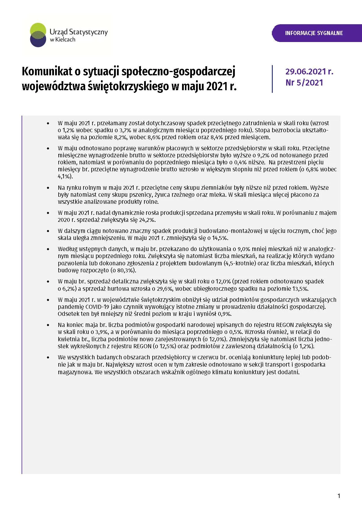 - Komunikat o sytuacji społeczno-gospodarczej województwa świętokrzyskiego - czerwiec 2021
