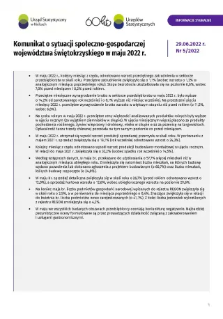 - Komunikat o sytuacji społeczno-gospodarczej województwa świętokrzyskiego - czerwiec 2022