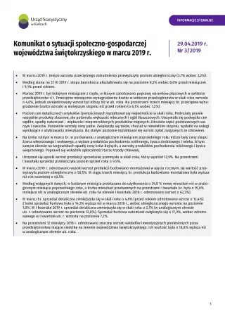 Komunikat o sytuacji społeczno-gospodarczej województwa świętokrzyskiego - marzec 2019