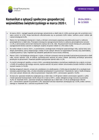 Komunikat o sytuacji społeczno-gospodarczej województwa świętokrzyskiego - marzec 2020