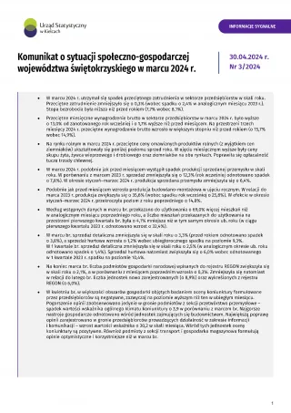 - Komunikat o sytuacji społeczno-gospodarczej województwa świętokrzyskiego - kwiecień 2024