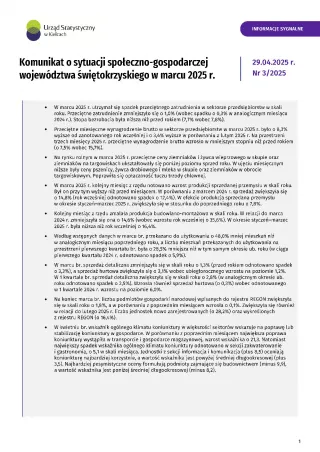 - Komunikat o sytuacji społeczno-gospodarczej województwa świętokrzyskiego - kwiecień 2025