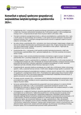 Komunikat o sytuacji społeczno-gospodarczej województwa świętokrzyskiego - październik 2024