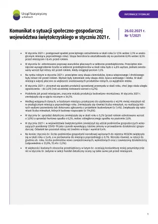 Komunikat o sytuacji społeczno-gospodarczej województwa świętokrzyskiego - styczeń 2021