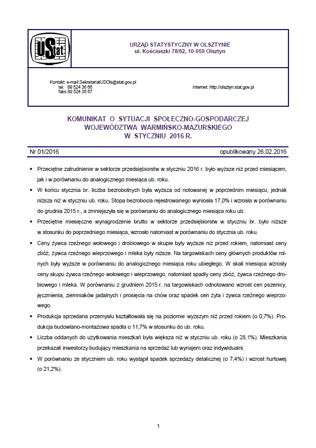 - Komunikat o sytuacji społeczno-gospodarczej województwa warmińsko-mazurskiego w lutym 2016 r.