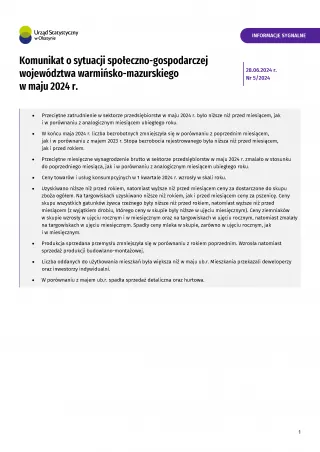 Komunikat o sytuacji społeczno-gospodarczej województwa warmińsko-mazurskiego w maju 2024 r.
