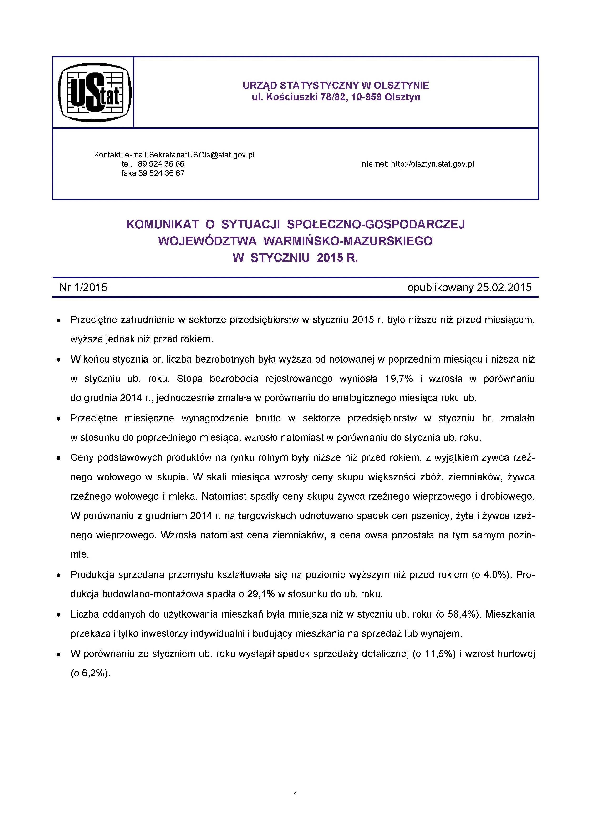 - Komunikat o sytuacji społeczno-gospodarczej województwa warmińsko-mazurskiego w lutym 2015 r.