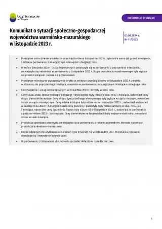 Komunikat o sytuacji społeczno-gospodarczej województwa warmińsko-mazurskiego w listopadzie 2023 r.