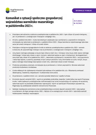 - Komunikat o sytuacji społeczno-gospodarczej województwa warmińsko-mazurskiego w listopadzie 2023 r.