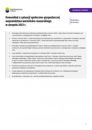 Komunikat o sytuacji społeczno-gospodarczej województwa warmińsko-mazurskiego w sierpniu 2023 r.