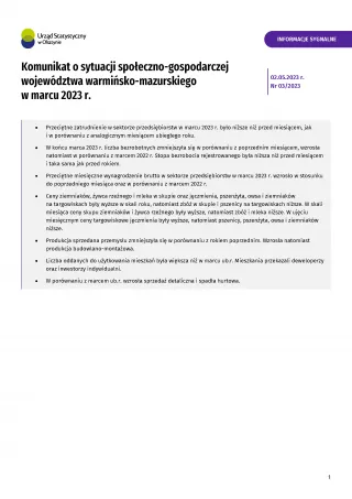 Komunikat o sytuacji społeczno-gospodarczej województwa warmińsko-mazurskiego w marcu 2023 r.
