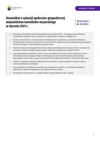 - Komunikat o sytuacji społeczno-gospodarczej województwa warmińsko-mazurskiego w styczniu 2024 r.