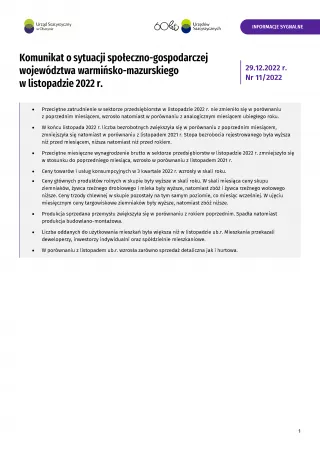 - Komunikat o sytuacji społeczno-gospodarczej województwa warmińsko-mazurskiego w grudniu 2022 r.