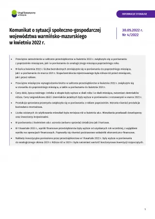 - Komunikat o sytuacji społeczno-gospodarczej województwa warmińsko-mazurskiego w maju 2022 r.