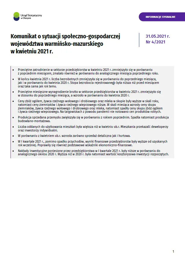 - Komunikat o sytuacji społeczno-gospodarczej województwa warmińsko-mazurskiego w maju 2021 r.