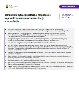 - Komunikat o sytuacji społeczno-gospodarczej województwa warmińsko-mazurskiego w marcu 2021 r.