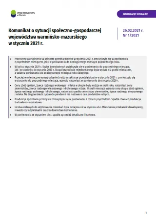 Komunikat o sytuacji społeczno-gospodarczej województwa warmińsko-mazurskiego w styczniu 2021 r.