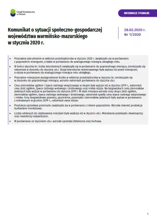 - Komunikat o sytuacji społeczno-gospodarczej województwa warmińsko-mazurskiego w lutym 2020 r.
