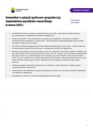Komunikat o sytuacji społeczno-gospodarczej województwa warmińsko-mazurskiego w marcu 2025 r.