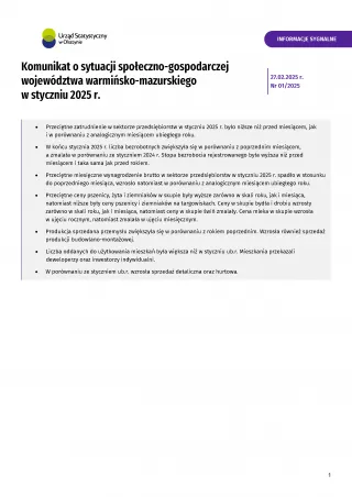 - Komunikat o sytuacji społeczno-gospodarczej województwa warmińsko-mazurskiego w lutym 2025 r.