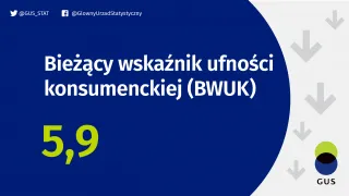 Bieżący wskaźnik ufności konsumenckiej (BWUK), syntetycznie opisujący obecne tendencje konsumpcji indywidualnej, był niższy o 1,9 p. proc. w stosunku do poprzedniego miesiąca i ukształtował się na poziomie 5,9*.