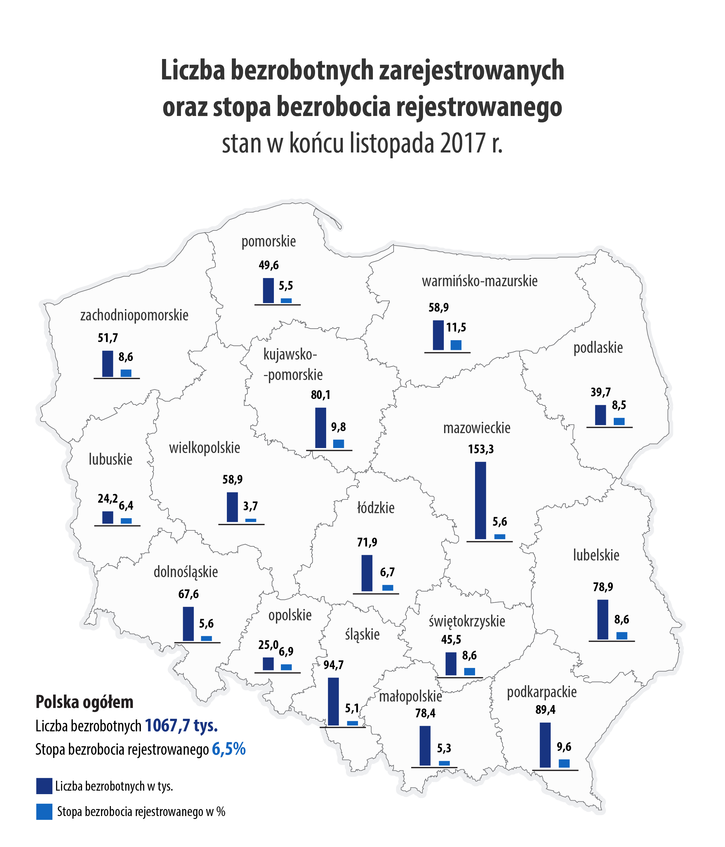 Informacja o liczbie bezrobotnych zarejestrowanych oraz stopie bezrobocia według województw, podregionów i powiatów według stanu w końcu listopada 2017 r.