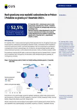 Ruch graniczny oraz wydatki cudzoziemców w Polsce i Polaków za granicą w 1 kwartale 2022 roku