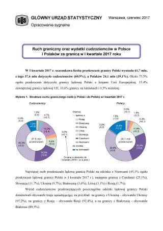 Ruch graniczny oraz wydatki cudzoziemców w Polsce i Polaków za granicą w I kwartale 2017 roku