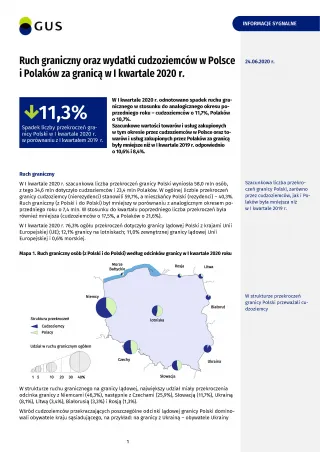 Ruch graniczny oraz wydatki cudzoziemców w Polsce i Polaków za granicą w I kwartale 2020 roku